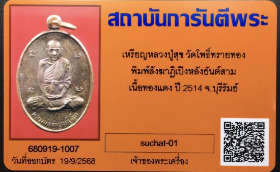 เหรียญสังฆาฏิเปิง(ยันต์สาม) หลวงปู่สุข วัดโพธิ์ทรายทอง บุรีรัมย์ ปี2514 สวยครับ