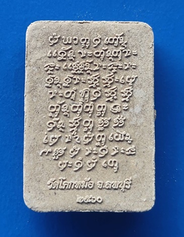 จารึกเป็นอักขระภาษาอินเดียโบราณ เป็นยันต์ยอดเกศ หรือยันต์ร้อยช่อง ตามตำรับโบราณ ยันต์นี้ทรงอานุภาพทางป้องกันและสยบคุณไสย คุณผี คุณคน ทุกชนิด ตลอดจนเป็น มหาอำนาจ มหาอุต ขจัดปัดเป่าอุปสรรคต่างๆ เป็นยันต์ที่มีอิทธิฤทธิ์สูงยิ่ง ใช้ได้ร้อยช่องร้อยประตูตามแต่อธิษฐานแล..