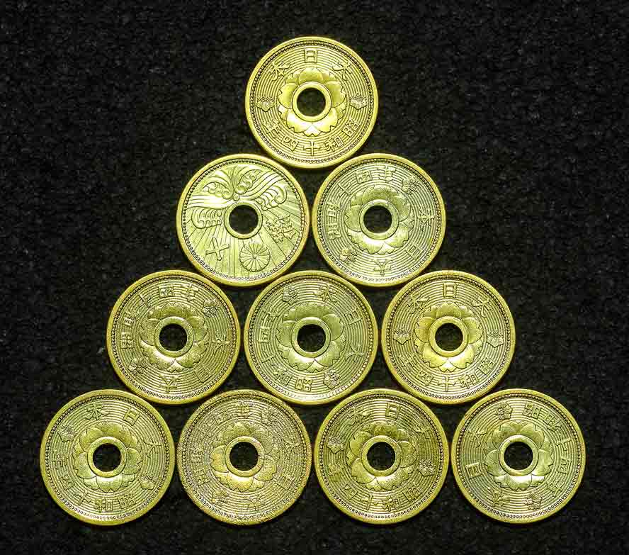 เหรียญกษาปณ์ญี่ปุ่น สมัยโชวะ(Showa jidai - รัชสมัยสมเด็จพระจักรพรรดิฮิโรฮิโตะ ปีที่ 14) - ค.ศ.1939 รวม 10 เหรียญ UNC ไม่ผ่านใช้ |