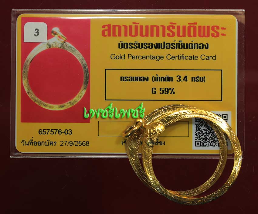 กรอบทองคำมือ2 เปอร์เซ็นต์ 59% หนัก3.4กรัม ขนาดหน้าจอกว้าง3เซ็นต์ ด้านข้างหรือความหนา กว้างถึงรอบพับ 0.5เซ็นต์ ใส่เหรียญโภคทรัพย์หลวงปู่หมุน หรือใกล้เคียง พร้อมบัตรรับรองจากการันตีพระสบายใจได้ ค่ะ