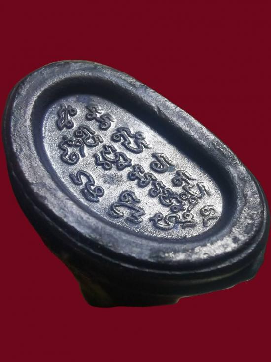 ด้านหลังตอกโค้ดเหนือจักรตรี ใต้ฐานปิดกริ่งลงอักขระยันต์ศักดิ์สิทธิ์ |