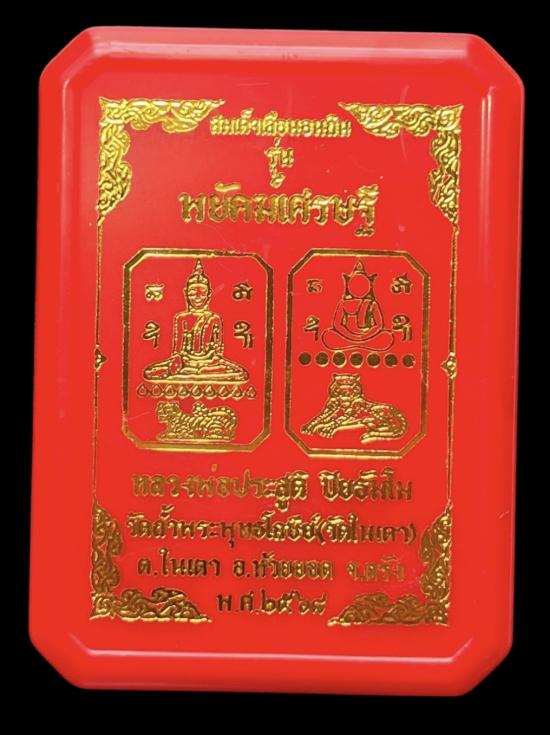 สมเด็จเสือนอนกิน รุ่น "พยัคฆ์เศรษฐี" หลวงพ่อประสูติ ปิยธัมโม วัดถ้ำพระพุทธโกษีย์(ในเตา)จ.ตรัง เนื้อน้ำตาลว่าน 108 ผสมมวลสารจีวร อกเงิน กำไลเงิน ตะกรุดทองทิพย์ 6 ดอก ฝังนะ นำฤกษ์ No.13 พร้อมกล่องเดิม |