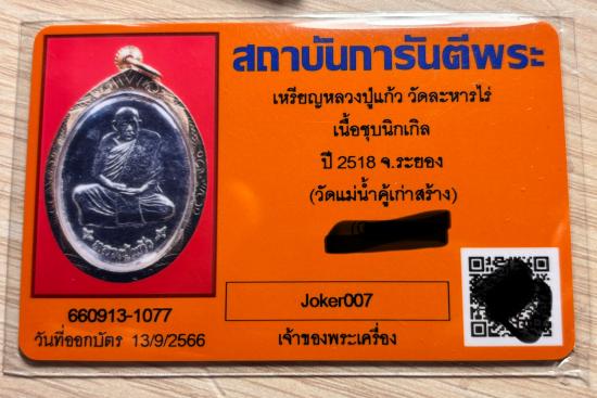 เหรียญหลวงปู่แก้ววัดละหารไร่เนื้อชุบนิกเกิลปี 2518 จังหวัดระยอง วัดแม่น้ำคู้เก่าสร้าง
