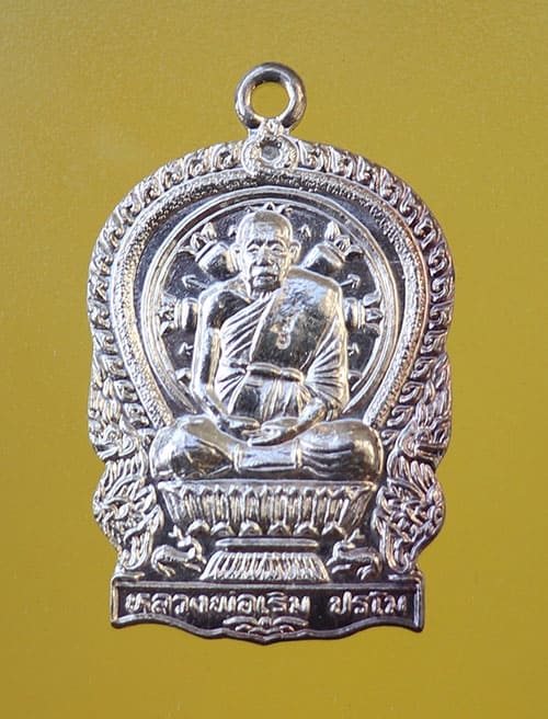 เหรียญนั่งพานรุ่น1 เนื้อเงิน หลวงพ่อเริ่ม ปรโม วัดจุกกะเฌอ จังหวัดชลบุรี หมายเลข 2472 สวยๆ เดิมๆ ปี 2537