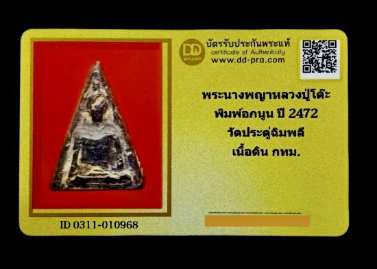 พระนางพญา หลวงปู่โต๊ะ วัดประดู่ฉิมพลี พิมพ์อกนูน เนื้อดิน ปี2472 ++ บัตรรับรองพระแท้++สวยยยยยเดิมๆ |