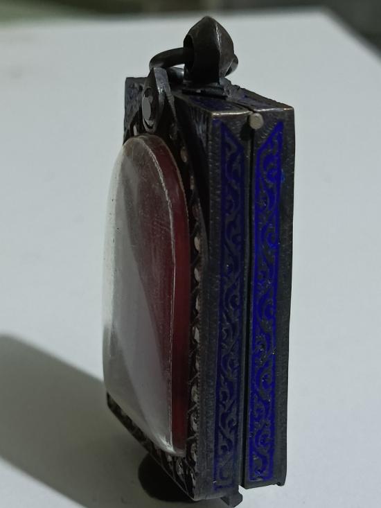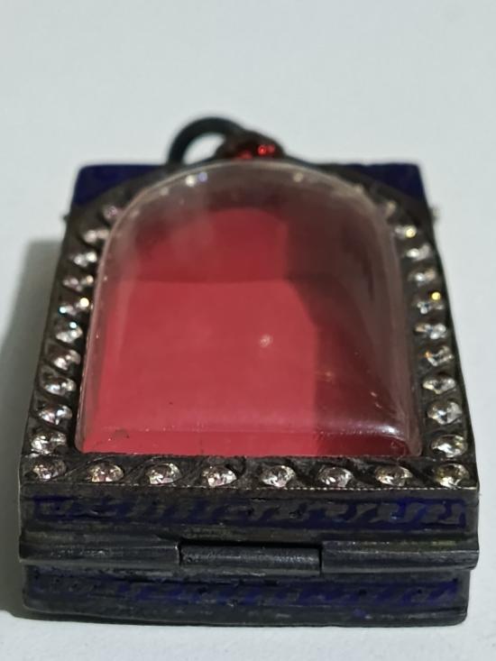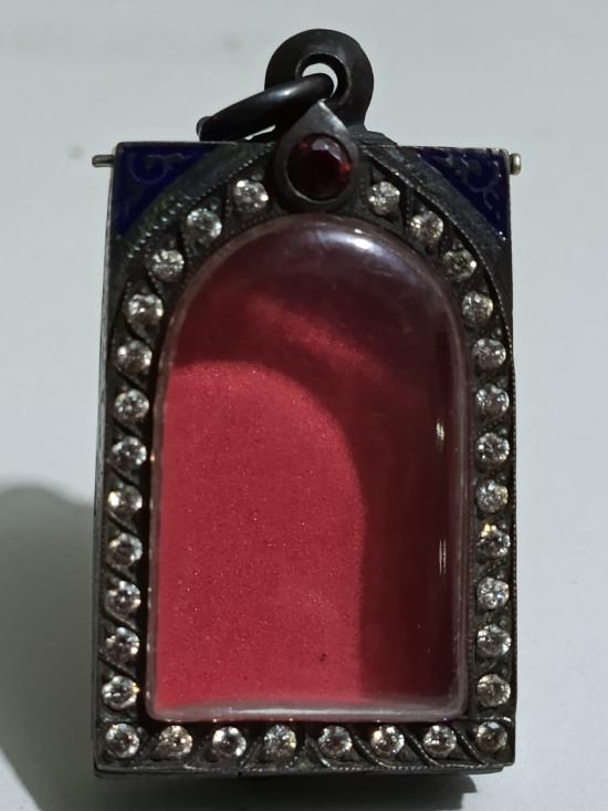 ตลับเงินลงยาเก่าฝังพลอย ปิดหลังแกะลาย. ลงยาร้อน หัวสิงห์ใหญ่ ใส่พระสมเด็จ.หนาหนัก 21.09 กรัม สวยสมบูรณ์สนามใบละ 1,500 หมดแล้วครับ