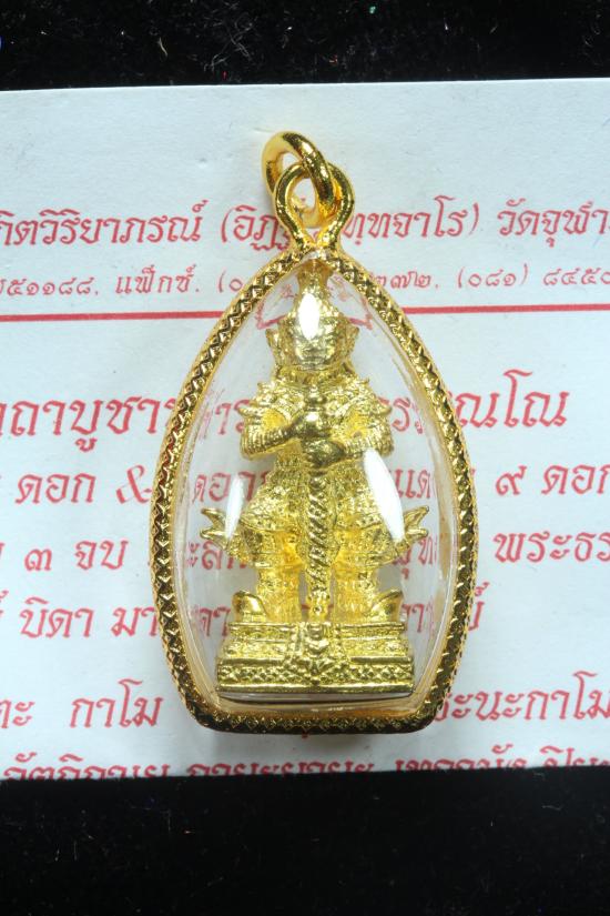 ** พร้อมเลี่ยมไมครอน วัดใจ 100 เดียว **รูปหล่อท้าวเวสสุวรรณ พิมพ์หน้ายักษ์ หลวงพ่ออิฏฐ์ วัดจุฬามณี เนื้อทองเหลือง ปี 2559 สมุทรสงคราม สภาพสวยเดิมๆไม่ผ่านการใช้ พร้อมใบคาถา// |