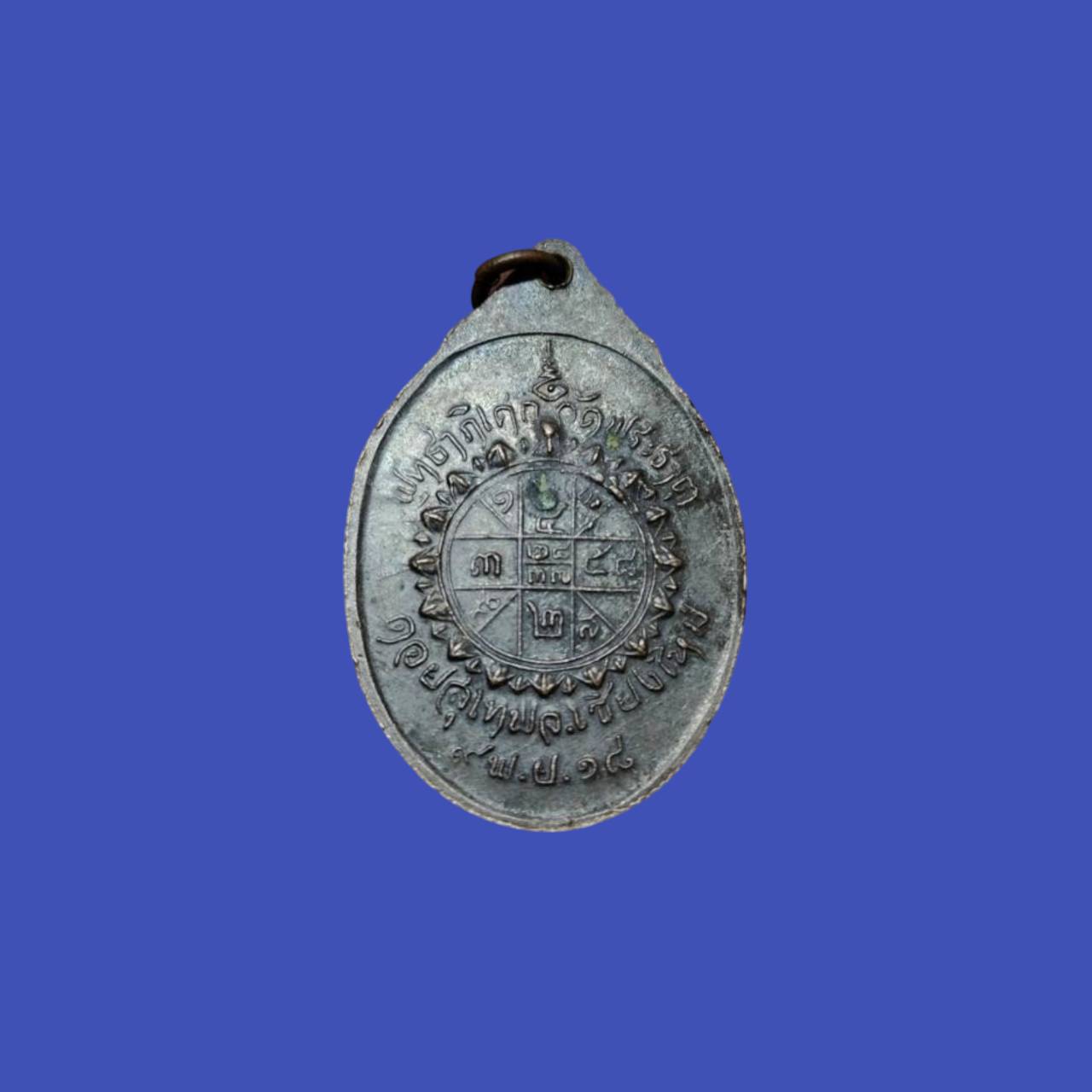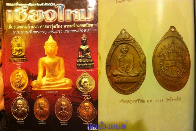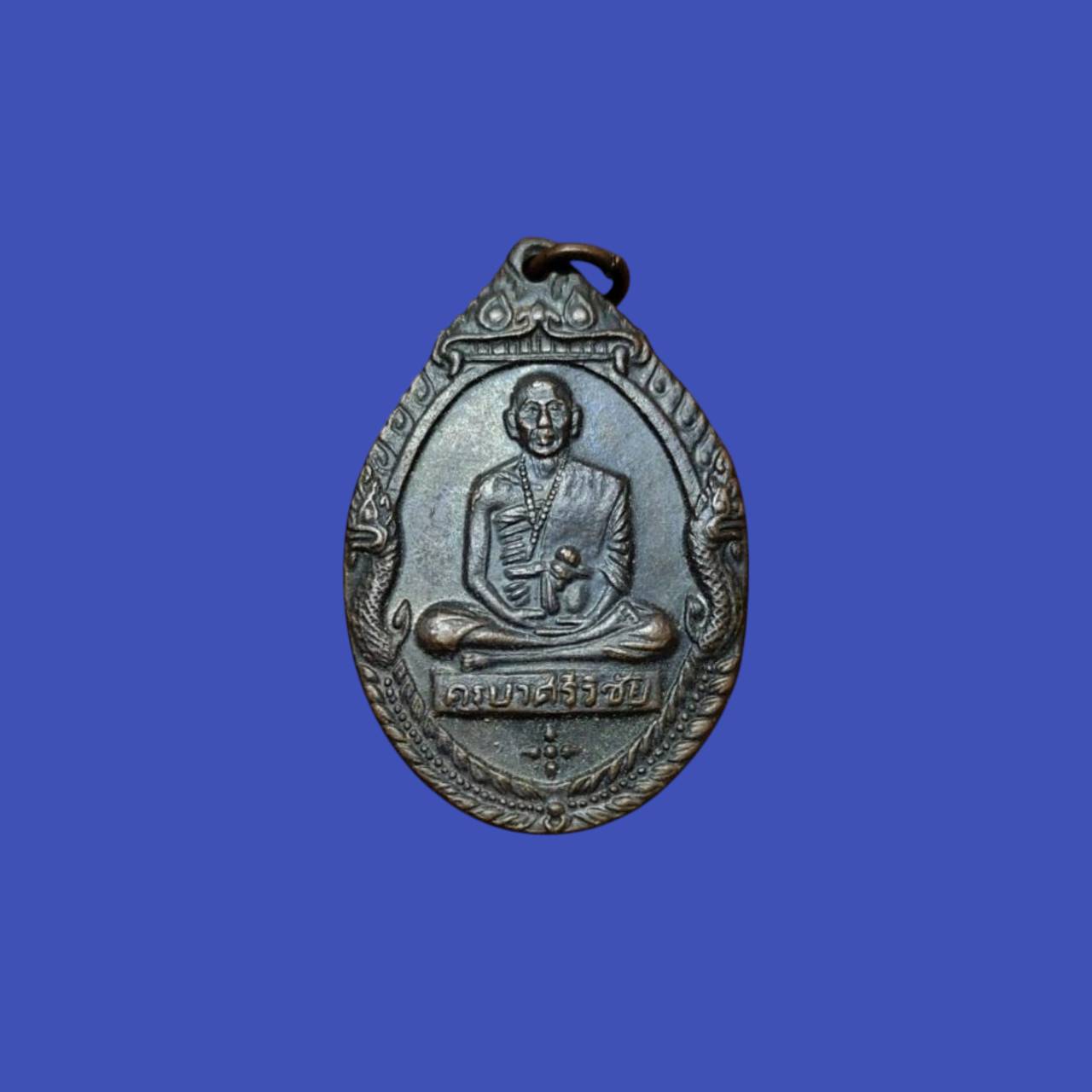 - เหรียญซุ้มพญานาค พระครูบาศรีวิชัย สิริวิชโย ปี 2518 เนื้อทองแดง ตอกโค๊ต พ พิธีพุทธาภิเษกวัดพระธาตุดอยสุเทพฯ จ.เชียงใหม่ ด้านหลังยันต์ดวง จัดสร้างเมื่อวันที่ 9 พฤศจิกายน พ.ศ. 2518