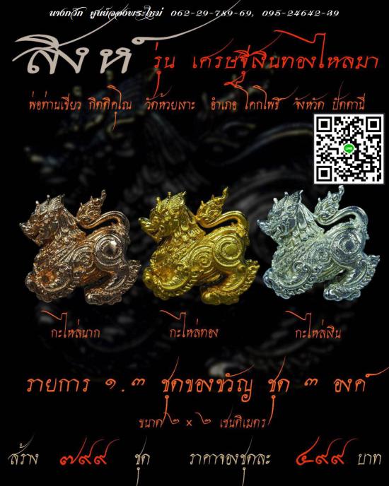 พญาสิงหราช (สิงห์ รุ่น 2 ) รุ่น เศรษฐีเงินทองไหลมา พ่อท่านเขียว วัดห้วยเงาะ จ.ปัตตานี ปี 2562 เนื้อกะไหล่เงิน สภาพสวย พร้อมกล่องเดิมครับ |