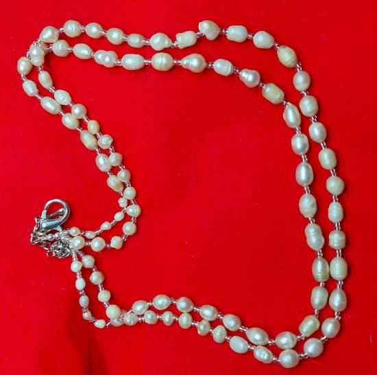 ***วัดใจ***สร้อยไข่มุกน้ำจืด แบบ2สาย ยาว 22 นิ้ว |