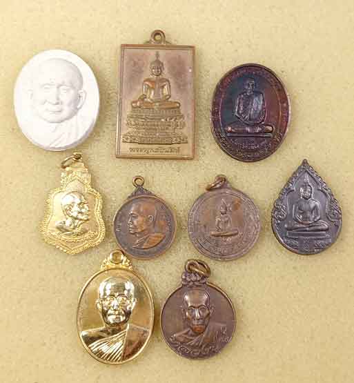 พระสมเด็จพระสังฆราชฯ 5 องค์ + เหรียญพระแก้วมรกต 2 เหรียญ +เหรียญ พระรชตวณโณ วัดเบญจมบพิตรฯ ปี47 +เหรียญหลวงปู่บู่ วัดนก ปี21 |