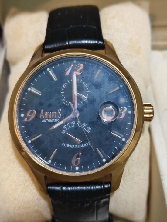 นาฬิกาผู้ชายเก่าเก็บสภาพดี ของแท้ Arbutus Automatic Power Reserve หน้าดำเรือนสีโรสโกล์ด