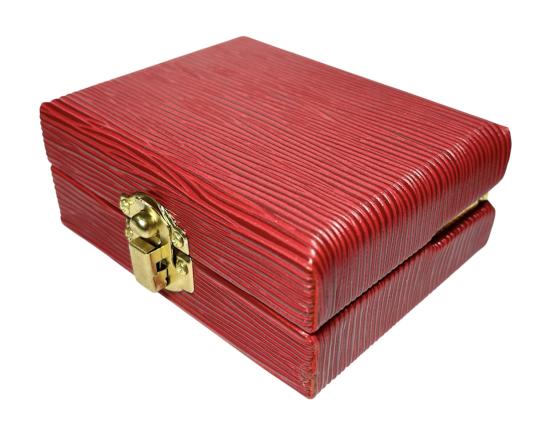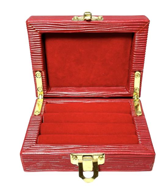 อุปกรณ์เก็บแหวนขนาดพกพา ลายไม้ LV สีแดง