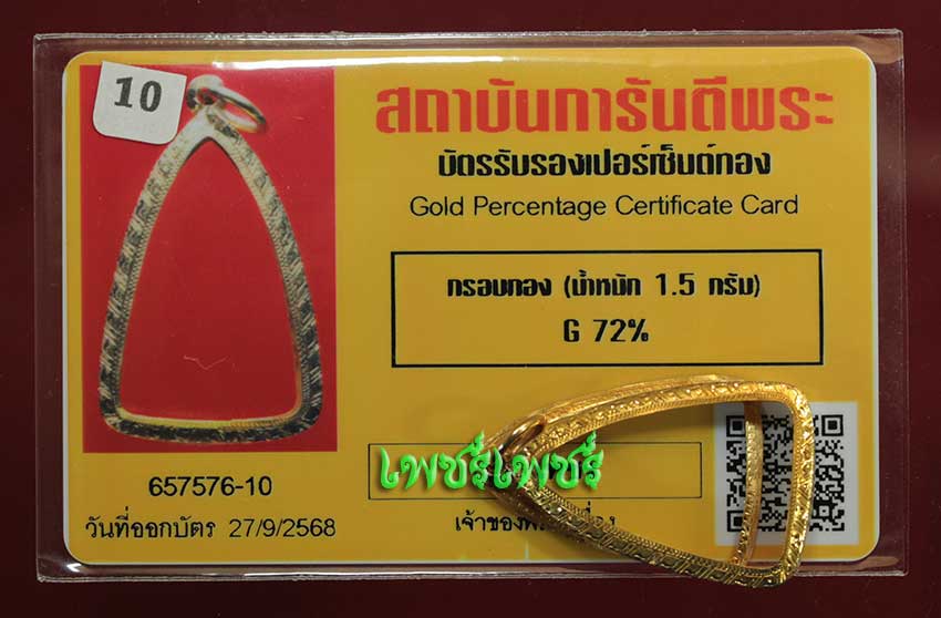 กรอบทองคำมือ2 เปอร์เซ็นต์ 72% หนัก1.5กรัม ขนาดหน้าจอกว้าง1.6 สูง2.6เซ็นต์ ด้านข้างหรือความหนา กว้างถึงรอบพับ 0.5เซ็นต์ ใส่หลวงปู่ทวด รุน1 หลังหนังสือห้าแถว พร้อมบัตรรับรองจากการันตีพระสบายใจได้ ค่ะ
