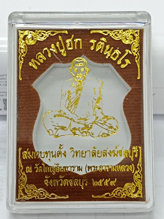 @@ เหรียญอาร์ม ปี2559 หลวงปู่ฮก รตินฺธโร วัดราษฏร์เรืองสุข (วัดมาบลำบิด) เนื้ออัลปาก้าลงยา หน้ากากทองชมพู (ตอกโค๊ต ฮ กรรมการ) หมายเลข 888 พร้อมกล่องครับ