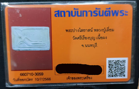 เคาะแรกแดง สมเด็จหลวงปู่เลี่ยม วัดศรีเรืองบุญ พิมพ์ไสยาสน์ (พิมพ์หายาก) +บัตรการันตี #2