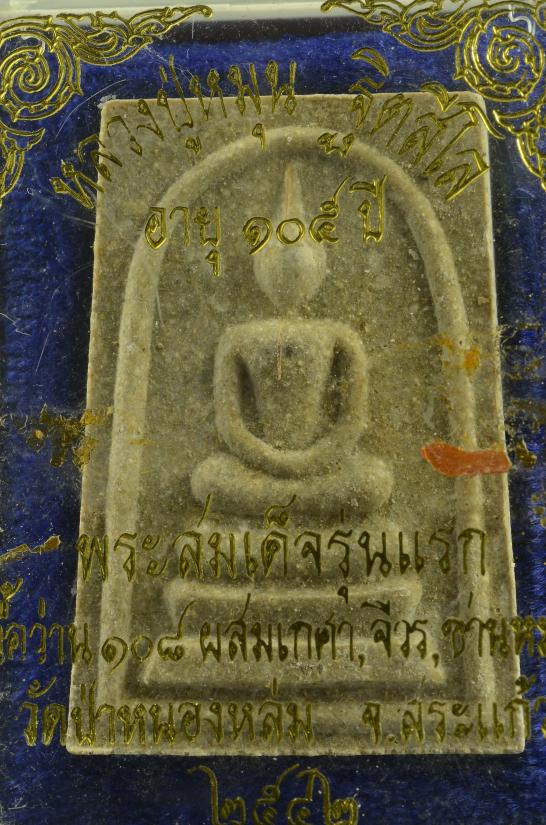 พระสมเด็จรุ่นแรก หลวงปู่หมุน ฐิตสีโล พิธีเจริญลาภ ปี 2542 หลังปั๊มยันต์แดง เนื้อว่านน108 ผสมเกศา จีวร ชานหมาก |