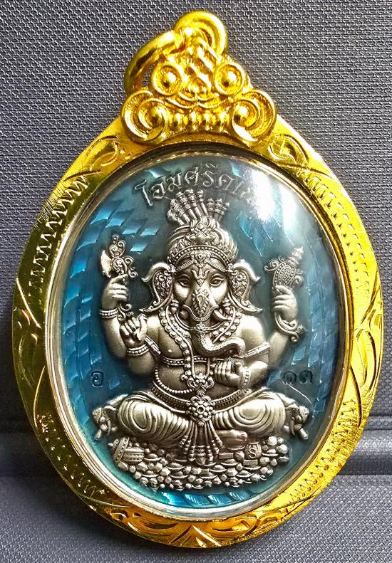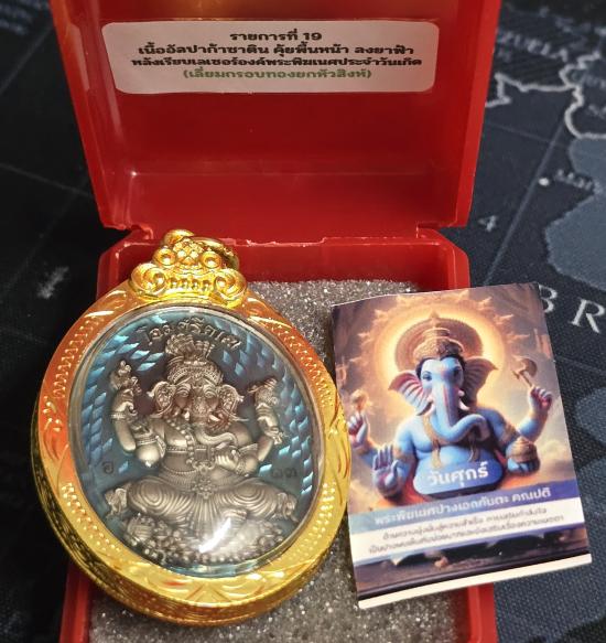 พระพิฆเนศ "โอมศรีคเณ" วัดท้ายน้ำ จ.พิจิตร  เนื้ออัลปาก้าซาติน ลงยาฟ้า หลังเรียบเลเซอร์พระพิฆเนศ เลี่ยมกรอบชุบทองพับหลัง  หมายเลข ๑๓...พร้อมกล่อง พระสวยมากครับ ราคาเบาๆเคาะแรกแดงครับ |