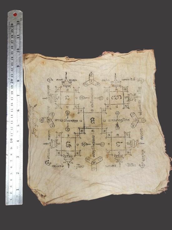 A1000.วัดใจ ผ้ายันต์เก่า ไม่ทราบที่ รายละเอียดตามรูป เคาะเดียวเเดง |