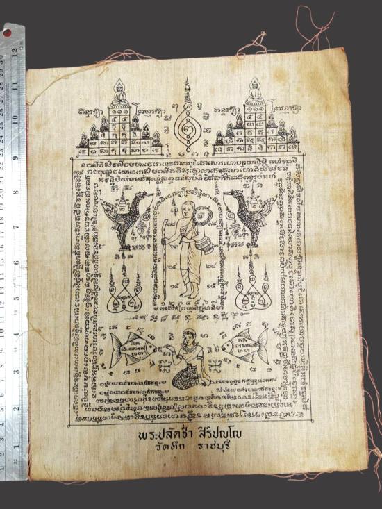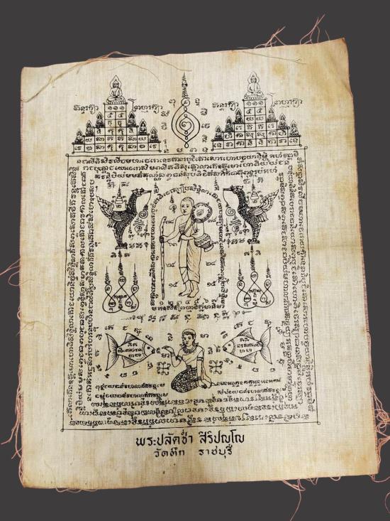 A1002.ผ้ายันต์พระสีวลี พระปลัดช่ำ วัดตึก ราชบุรี เคาะเดียวเเดง |
