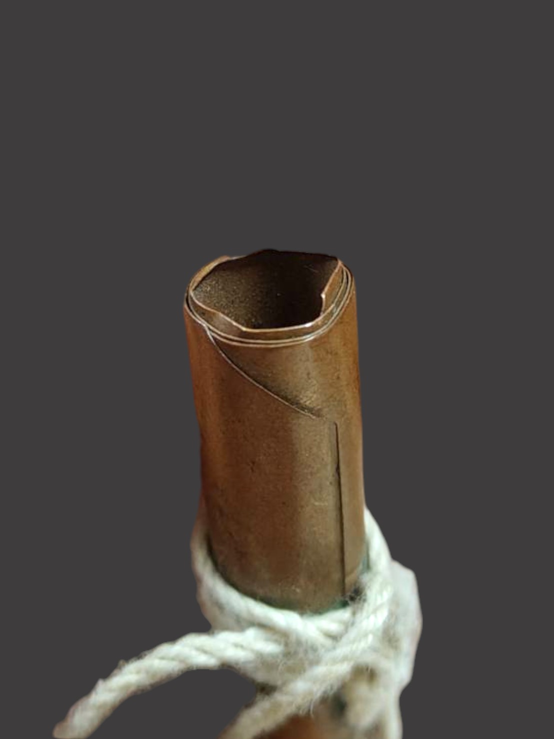 A1004.วัดใจของขลัง ตะกรุดทองเเดงเก่า ไม่ทราบที่ ยาว 3.5 นิ้ว เคาะเดียวเเดง |