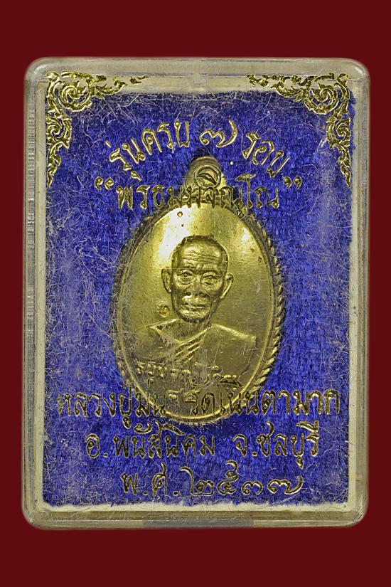 เหรียญหลังเต่ากะไหล่ทอง รุ่น ครบ 7 รอบ หลวงปู่ม่น ธัมมจิณโณ วัดเนินตามาก พศ.2537 กล่องเดิม (( แดงวัดใจ 100 )) |