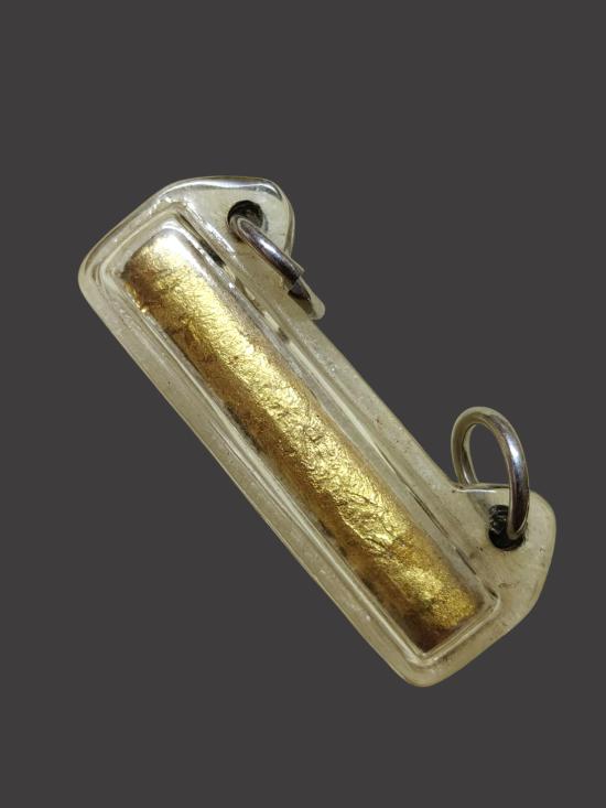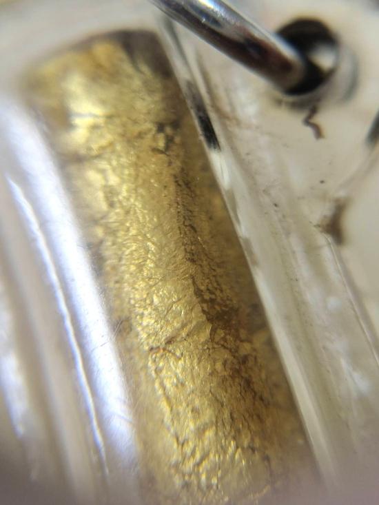 A1009.วัดใจของดี ไม้มงคล ปิดทองเก่า ไม่ทราบที่ เลี่ยมพร้อมใช้ เคาะเดียวเเดง |
