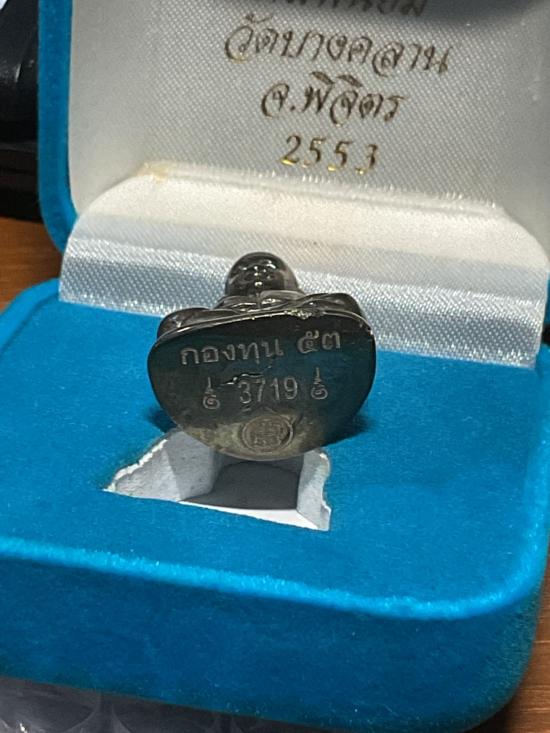 หลวงพ่อเงิน กองทุน 53 รูปหล่อพิมพ์นิยทเนื้อเมฆสิทธิ์สำริดเขียว หมายเลข 3719 กล่องเดิมๆครับ |
