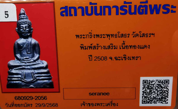 พระกริ่งพระพุทธโสธร วัดโสธรฯ พิมพ์สร้างเสริม(แป๊ะยิ้ม) เนื้อทองแดง กริ่งดัง ปี2508 จ.ฉะเชิงเทรา + บัตรG-pra สภาพสวยสวยเลยค่ะ สภาพตามรูปทุกประการค่ะ
