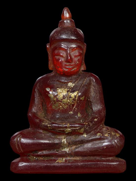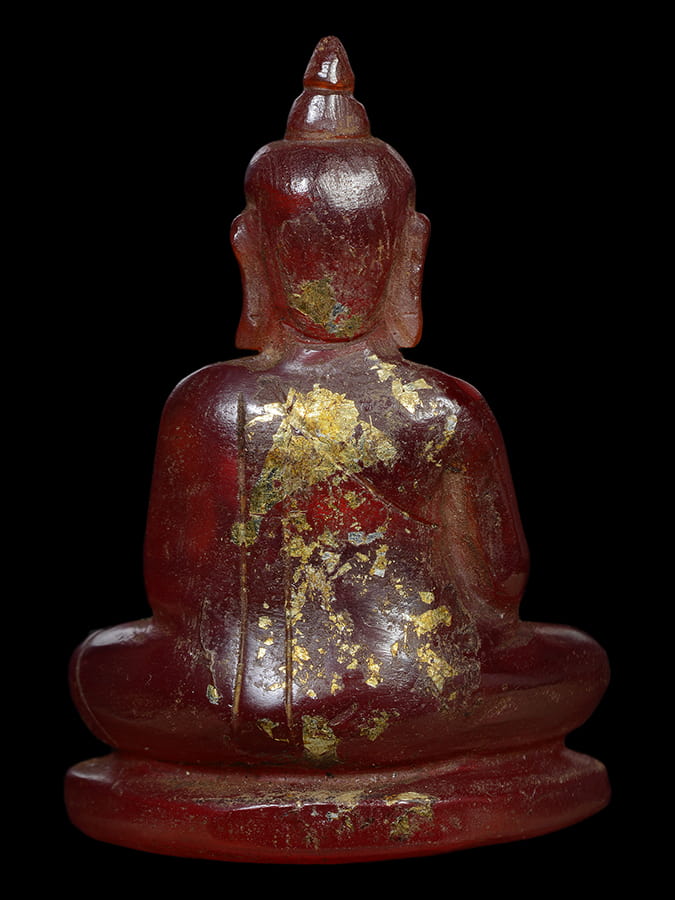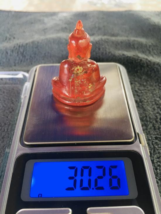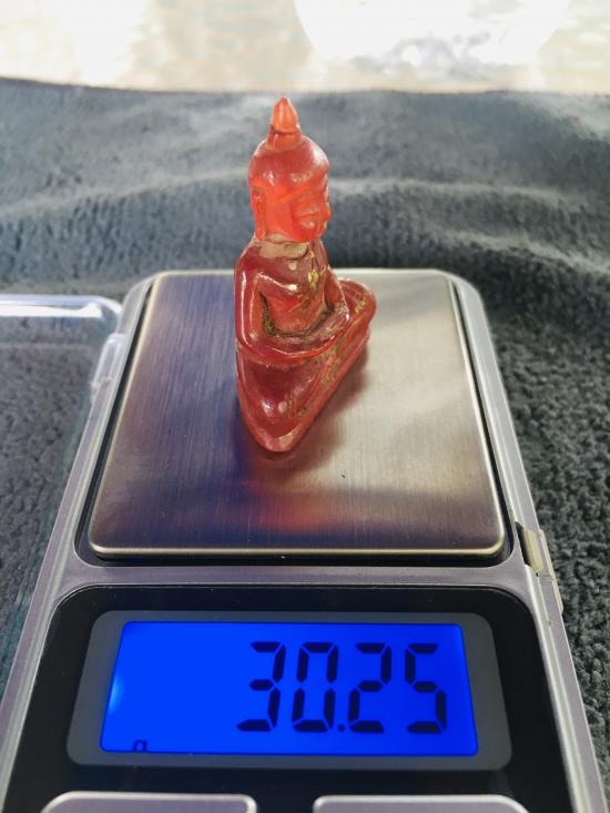 พระแก้วหินแกะ ศิลปะทางเหนือ เนื้อแดง หน้าตัก 1 นิ้ว สูง ประมาณ 1.5 นิ้ว