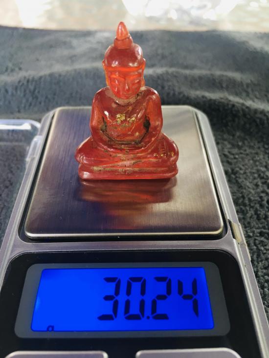 พระแก้วหินแกะ เนื้อแดง หน้าตัก 1 นิ้ว สูง ประมาณ 1.5 นิ้ว สภาพสมบูรณ์