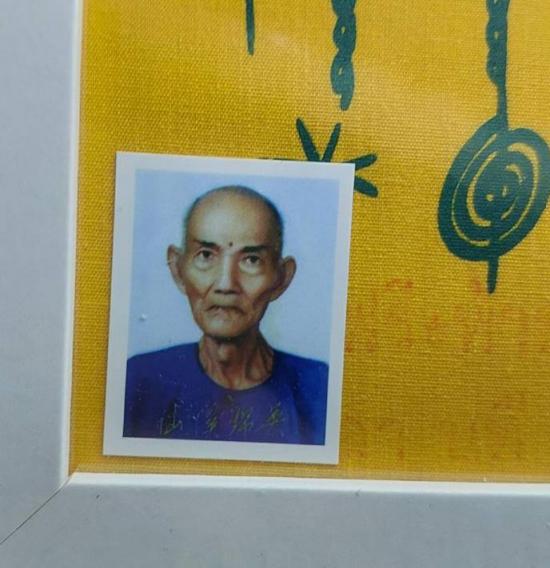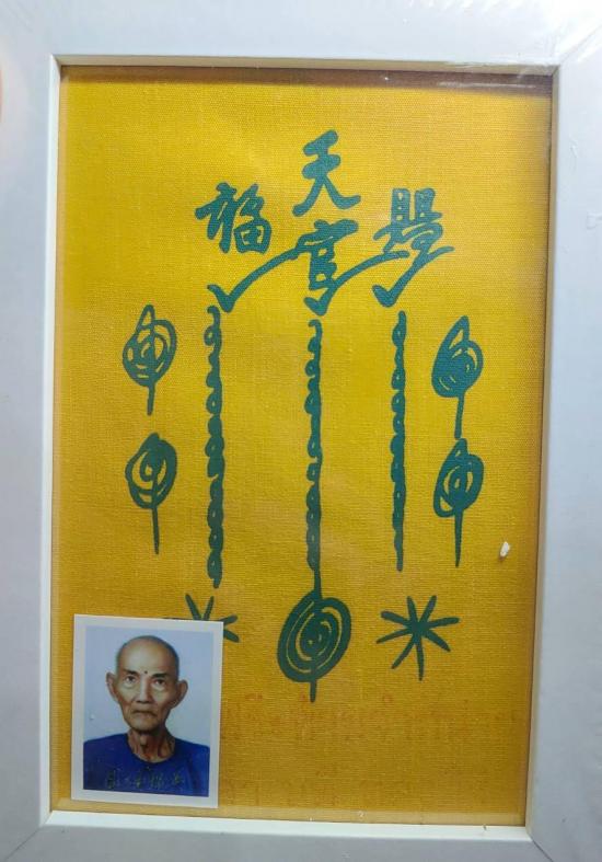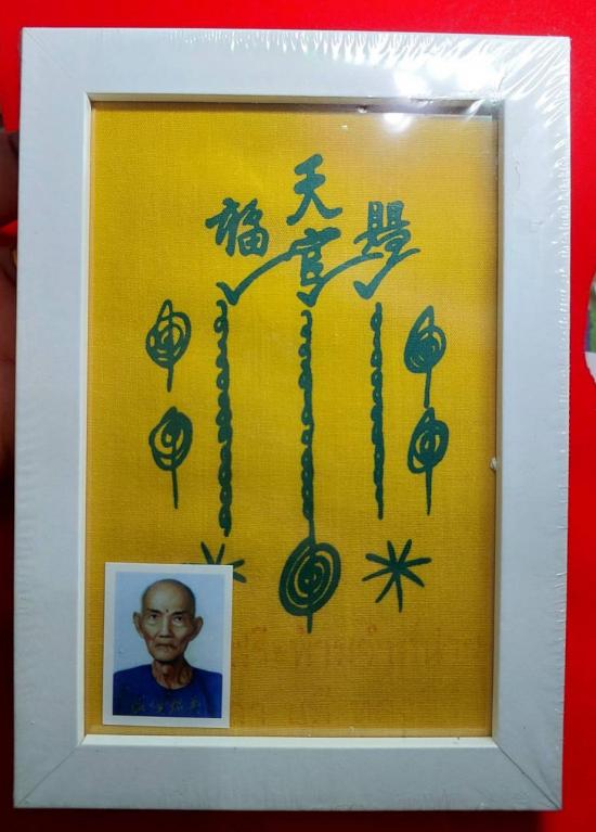 **วัดใจ**รูปบูชาใส่กรอบผ้ายันต์ เซียนแปะโรงสี โง้วกิมโคย วัดศาลเจ้า ขนาด 4 X 6 นิ้ว |