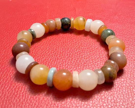 ประคำข้อมือหยกรวม (น้ำผึ้ง+เขียว+ขาว เป็นหยกพม่าแท้ 100 % ขนาด 10 มิล ฟรีไซด์ (กท.37)