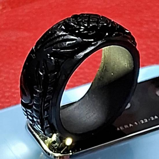 แหวนหยกดำแกะลายมังกร หยกพม่าแท้ 100 % (แสงส่องผ่าน) เส้นผ่าศูนย์กลาง 2.1 ซม. หนา 1.1 ซม. หายากวงใหญ่ๆ ไม่ค่อยได้มาบ่อย ราคาค่อนข้างสูง (กท.16)
