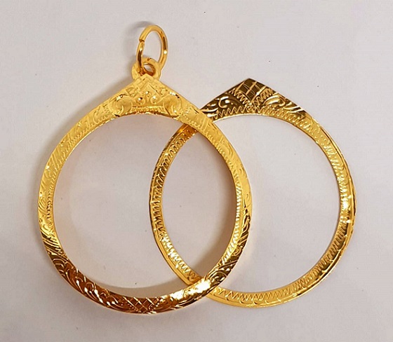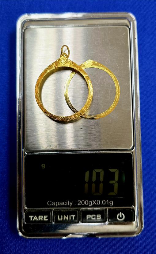 กรอบทองคำแท้ 80% ยกซุ้ม มือ 1 ขนาดหน้าจอ 2.3x2.3 cm. สำหรับใส่เหรียญทรงกลมทั่วไป ลูกอม น้ำหนัก 1.03 กรัม