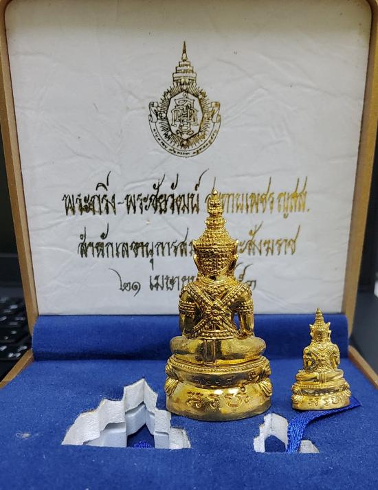 พระกริ่ง - พระชัยวัฒน์ สะทานเพชร ญสส. สมเด็จพระญาณสังวรฯ วั ดบวรนิเวศฯ ปี2553 เนื้อทองทิพย์ มีหมายเลข ๖๒๑๘โค้ตกำกับ พร้อมกล่องเดิม |