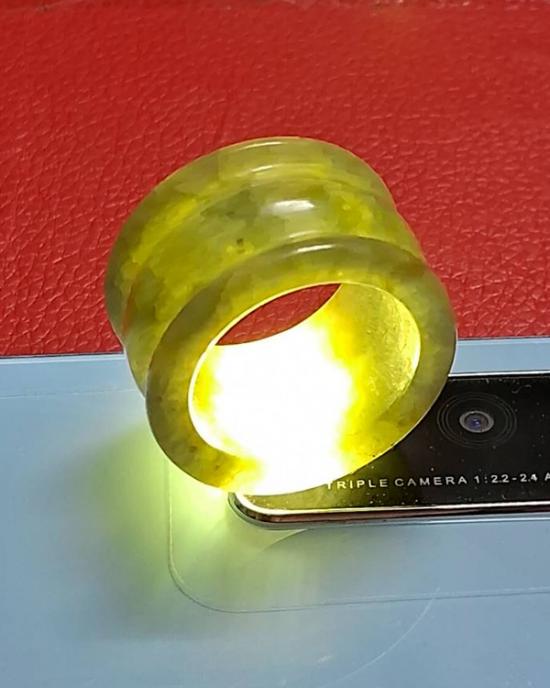 แหวนหยกจักรพรรดิ์ หยกพม่าแท้ 100 % (แสงส่องผ่าน) สีเขียว ลายธรรมชาติ สวยมากๆ เส้นผ่าศูนย์กลาง 1.9 ซม. หนา 1.6 ซม. หายาก (กท.43)