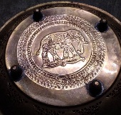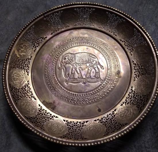 ถาดทองเหลืองลาย 12 ราศี ตรงกลางลายช้าง ตอกมือโบราณ