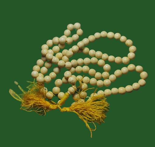 ประคำกรามช้างแกะ เป็นประคำอีกแบบหนึ่งที่เป็นประคำยุคแรก ๆ ของหลวงพ่ออุตตมะ วัดวังก์วิเวการาม จ.กาญจนบุรี ประคำนี้นำมาจากประเทศพม่า ( เพราะในเมืองไทยไม่มีกรามช้างมาให้ทำเม็ดประคำแล้ว หรือถ้ามีก็หายากและคงมีราคาแพงมาก ) เมื่อเป็นสิบ ๆ ปีมาแล้ว ซึ่งปัจจุบันนี้ในประเทศพม่าเองก็เป็นของหายากไปแล้วเหมือนกัน เส้นนี้สภาพสวยเดิม ๆ |