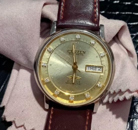 Citizen Automatic หน้าทอง 21 jewels 34 มม.พร้อมใช้เดินปกติ หน้าปัดมีรอยตามการใช้งาน ขัดอีกนิดหน่อยเยี่ยมเลยครับ