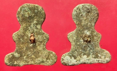 พระปิดตาตะพาบน้ำ เนื้อผงโรยอิฐเชิงตะกอน หลังฝังอิฐสถูปเจดีย์บูรพาจารย์วัดเขาอ้อ จำนวน 2 องค์ สร้างน้อย หายาก