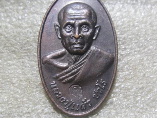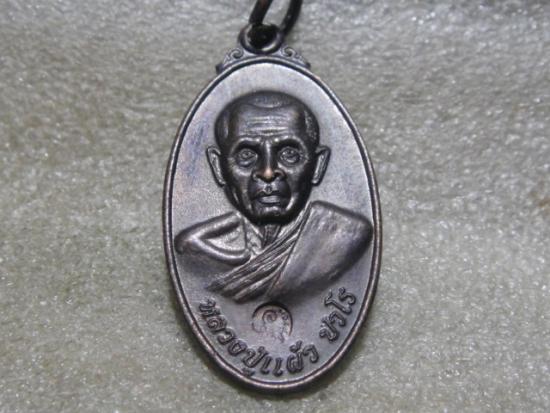 วัดใจเคาะเดียว........100.......เหรียญกันภัย ใบขี้เหล็ก หลวงปู่แผ้ว วัดรางหมัน จ.นครปฐม ปี 2550 ตอกโค๊ต สวย |