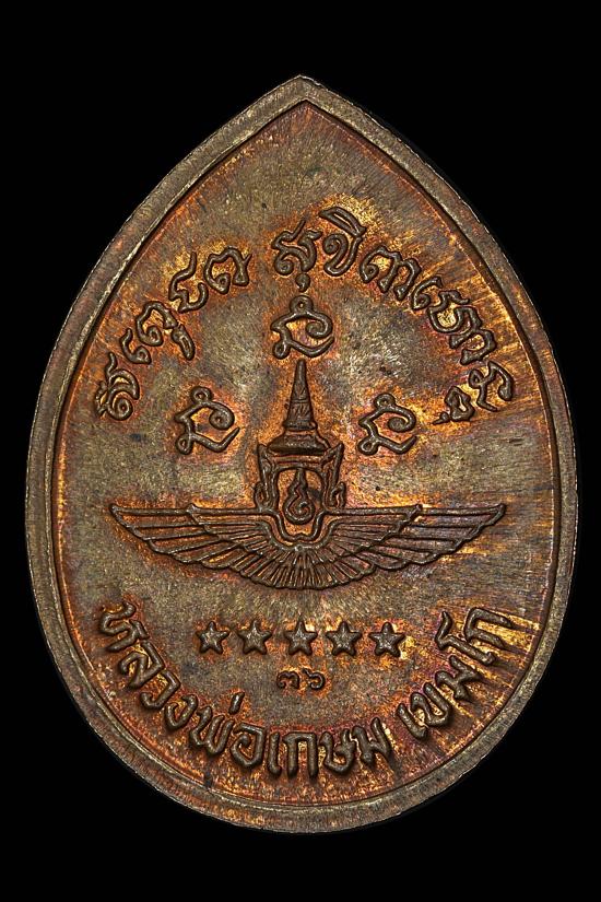 เหรียญหลวงพ่อเกษม กองทัพอากาศ ปี 36 เนื้อทองแดงสวยเดิมๆ แดง 100 |