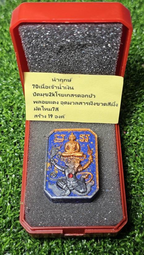 เนื้อเจ้าน้ำเงินปัดมุข2kโรยเกษรดอกบัวพลอยแดงอุดมวลสารฝังขวดสีผึ้งมัดไหม7สีสร้าง19องค์ เลขโค๊ต15 |