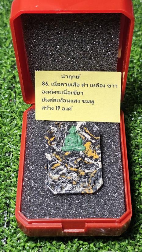เนื้อลายเสือดำเหลือขาวองค์พระเนื้อเขียวยันต์สะท้อนแสงสร้าง19องค์