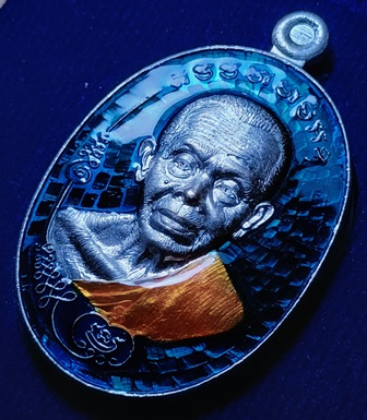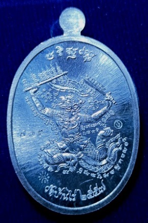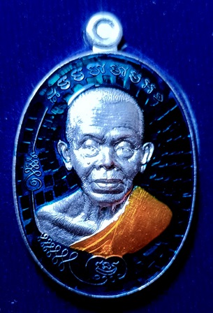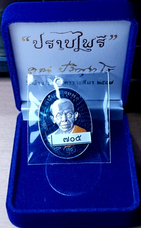 เหรียญหลวงพ่อคูณ รุ่นปราบไพรี เนื้อเงิน ลงยาสีน้ำเงิน จีวรเหลือง เบอร์705 ปี2557 กล่องเดิม |