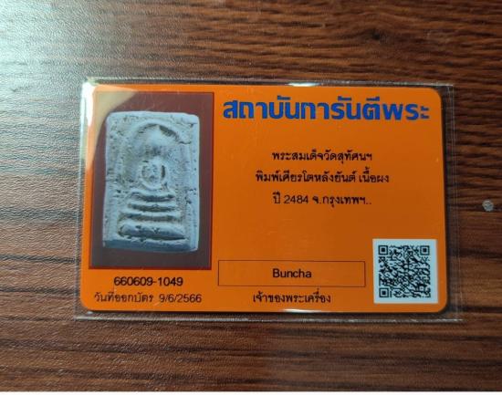 เคาะเดียวแดง พระสมเด็จ พระครูสุพจน์วัดสุทัศนๆ พิมพ์เศียรโตหลังยันต์ เนื้อผงปี2484 |