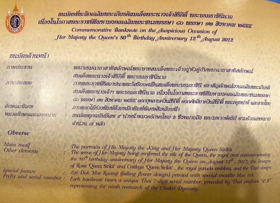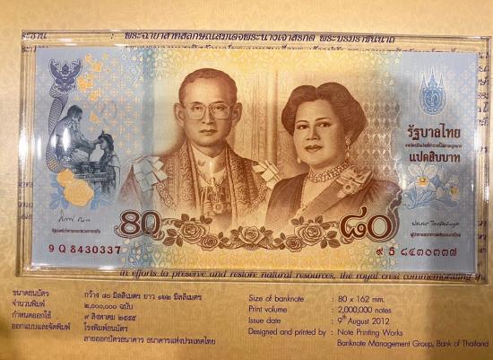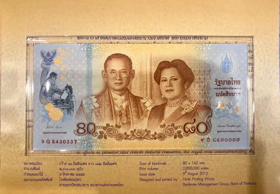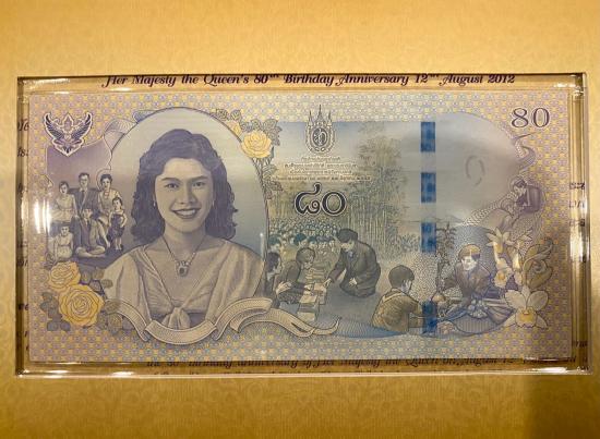 ธนบัตรที่ระลึก 80 บาท สมเด็จพระนางเจ้าฯ พระบรมราชินีนาถในรัชกาลที่ 9 เฉลิมพระชนมพรรษา 80 พรรษา |