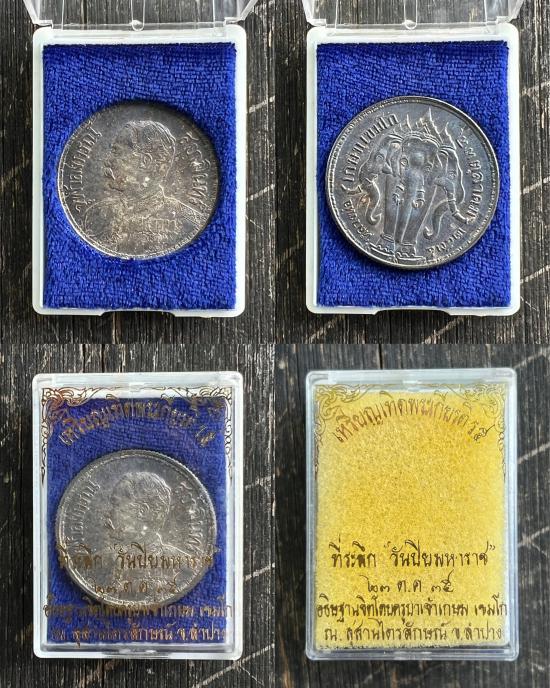 **แดง100***เหรียญรัชกาลที่ 5 หลังช้างสามเศียร หลวงพ่อเกษม เขมโก ปี 2535 เนื้อเงิน พิมพ์ใหญ่ ขนาดเส้นผ่าศูนย์กลาง 3.0 ซ.ม. พร้อมกล่องเดิมครับ