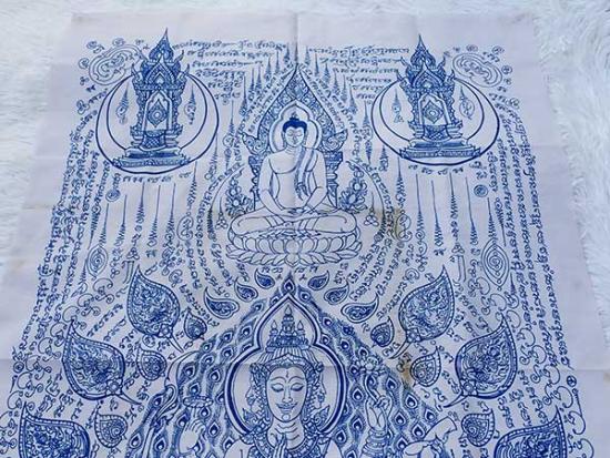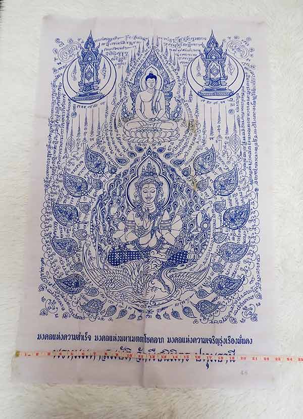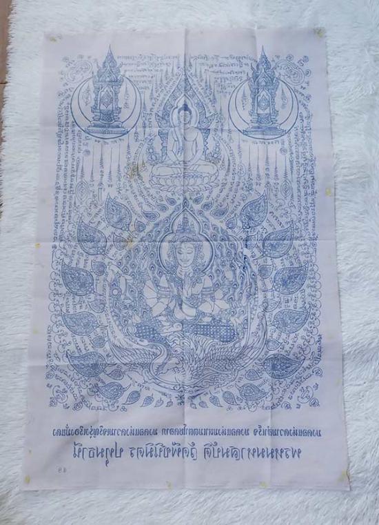 @เคาะแรกวัดใจครับ ผ้ายันต์พระพรหมมหาสมบัติ หลวงปู่ศรีเทพอุดร วัดพืชนิมิตร จ.ปทุมธานี ผืนใหญ่ ขนาด 35.5 x 23 นิ้ว สีขาว (สภาพใช้งาน เก่าเก็บ) เลข 48 ครับ@ |